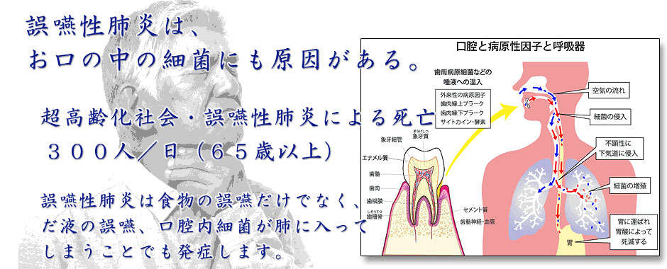 誤嚥性肺炎は、お口の中の細菌も原因がある。
